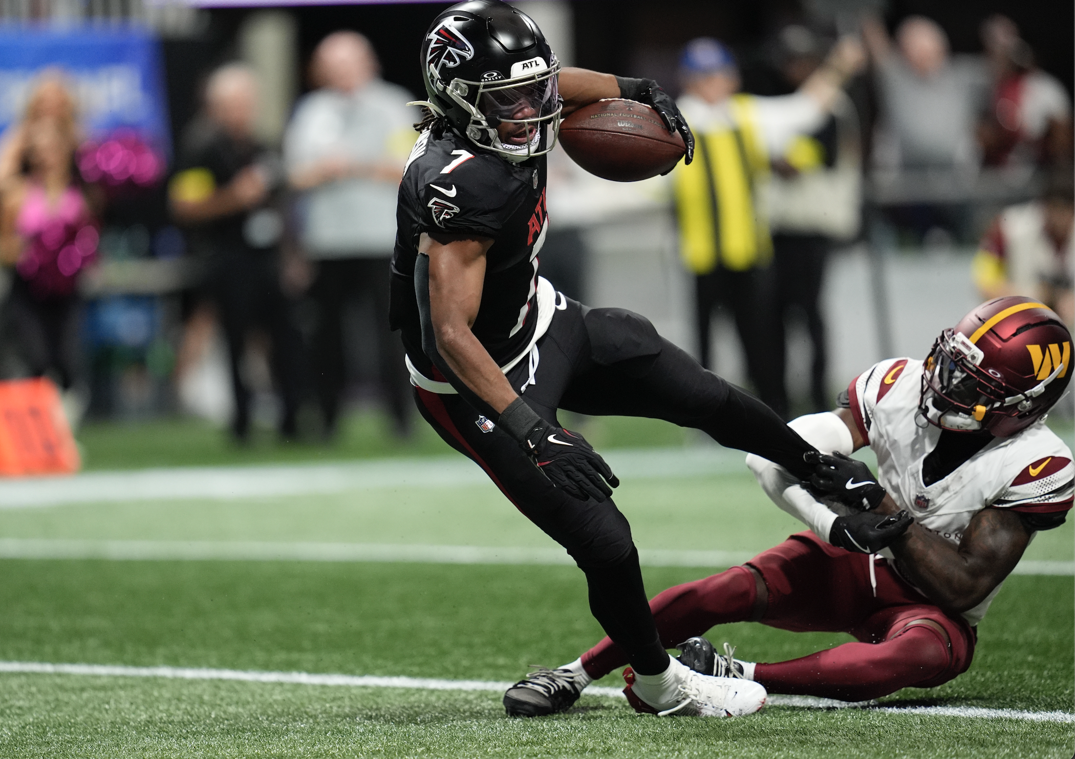 Bijan Robinson was the first RB off the board in a big chunk of fantasy drafts this year, but a guy named Skattebo just tripled Robinson’s TD output in one game. As a RUNNER, it’s an easy case that James Cook is his equal. Tyler Allgeier gets the tough yardage for the Falcons, but Penix is not a running QB. Josh Allen probably tips this to the Bills, but we will respect Bijan and go even.