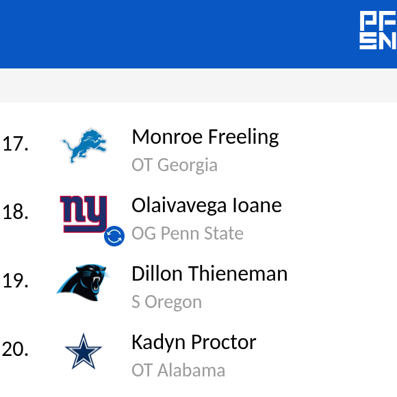 In this mock scenario, in which the FAMbase blog used PFSN’s mock simulator — and a little bit of our own spin on some teams’ selections — fans saw plenty of action occur through the first 20 picks after a bit of a slow start to the evening.